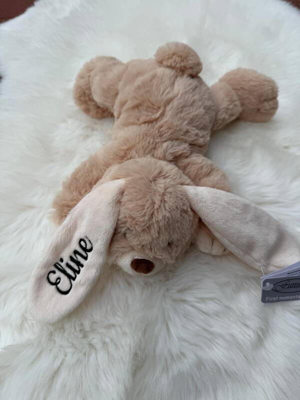 Grappige konijn met naam van een lief klein kindje. Perfect ontworpen om per brievenbuspost verstuurd te worden! Ideaal om als kraamcadeautje te laten versturen door Van Miran. De ontvanger hoeft niet thuis te blijven. Er wordt bespaart op de verzendkosten. Uiteraard niet alleen als kraamcadeautje weg te geven, maar het kan net zo goed een leuk verjaardagscadeautje zijn, een speciale gelegenheid of gewoon omdat het kan. De knuffel is het perfecte cadeau voor vrienden en geliefden.